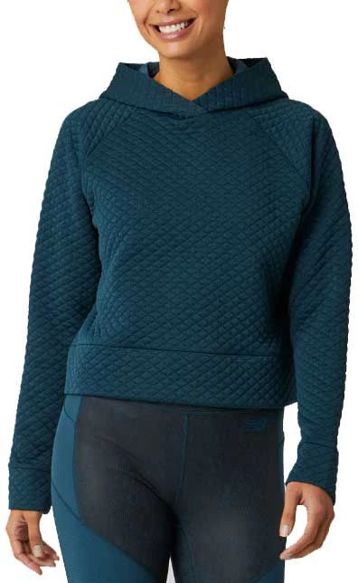 The New Balance® Heat Loft Hoodie features stretch quilt fabric and a cropped length for effortless comfort.